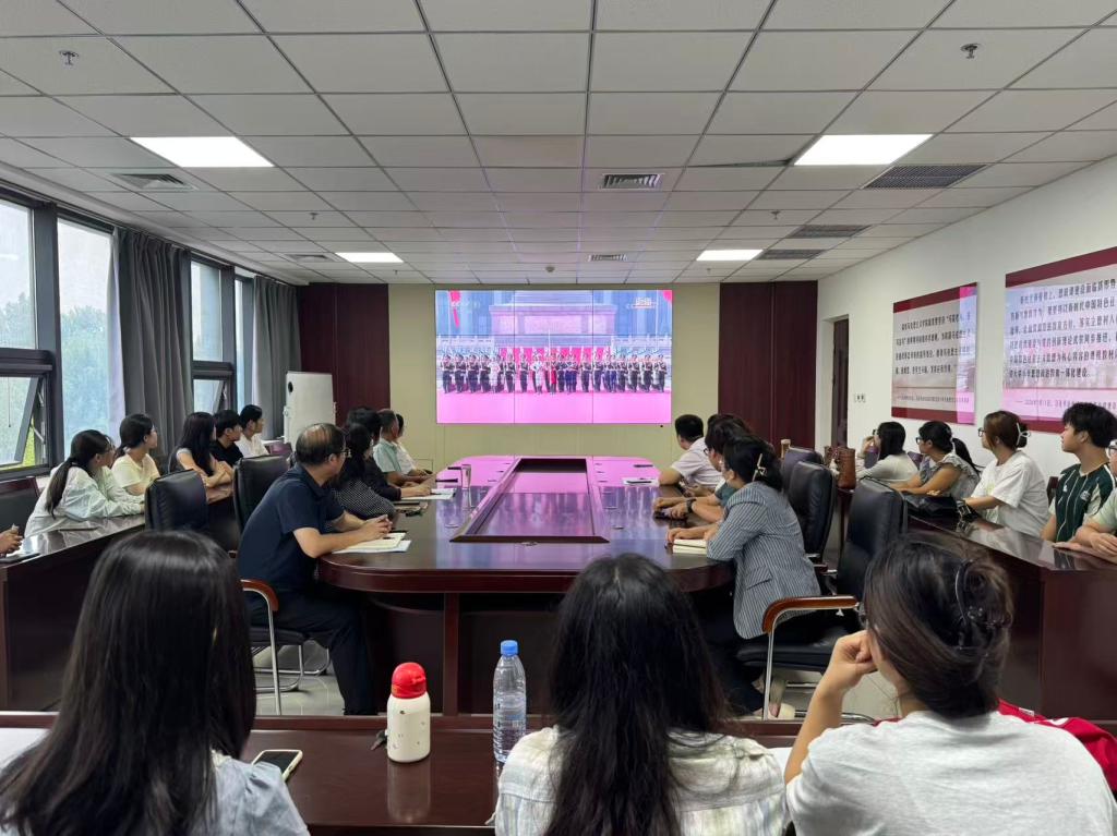 9月3日上午,学院组织师生代表在303会议室集中收看纪念中国人民抗日战争暨世界反法西斯战争胜利80周年阅兵仪式。大家认真聆听习近平总书记的重要讲话,共同回顾了十四年艰苦卓绝的抗战历程,深刻体会到中国人民以巨大的民族牺牲,为拯救人类文明、保卫世界和平作出的重大贡献。