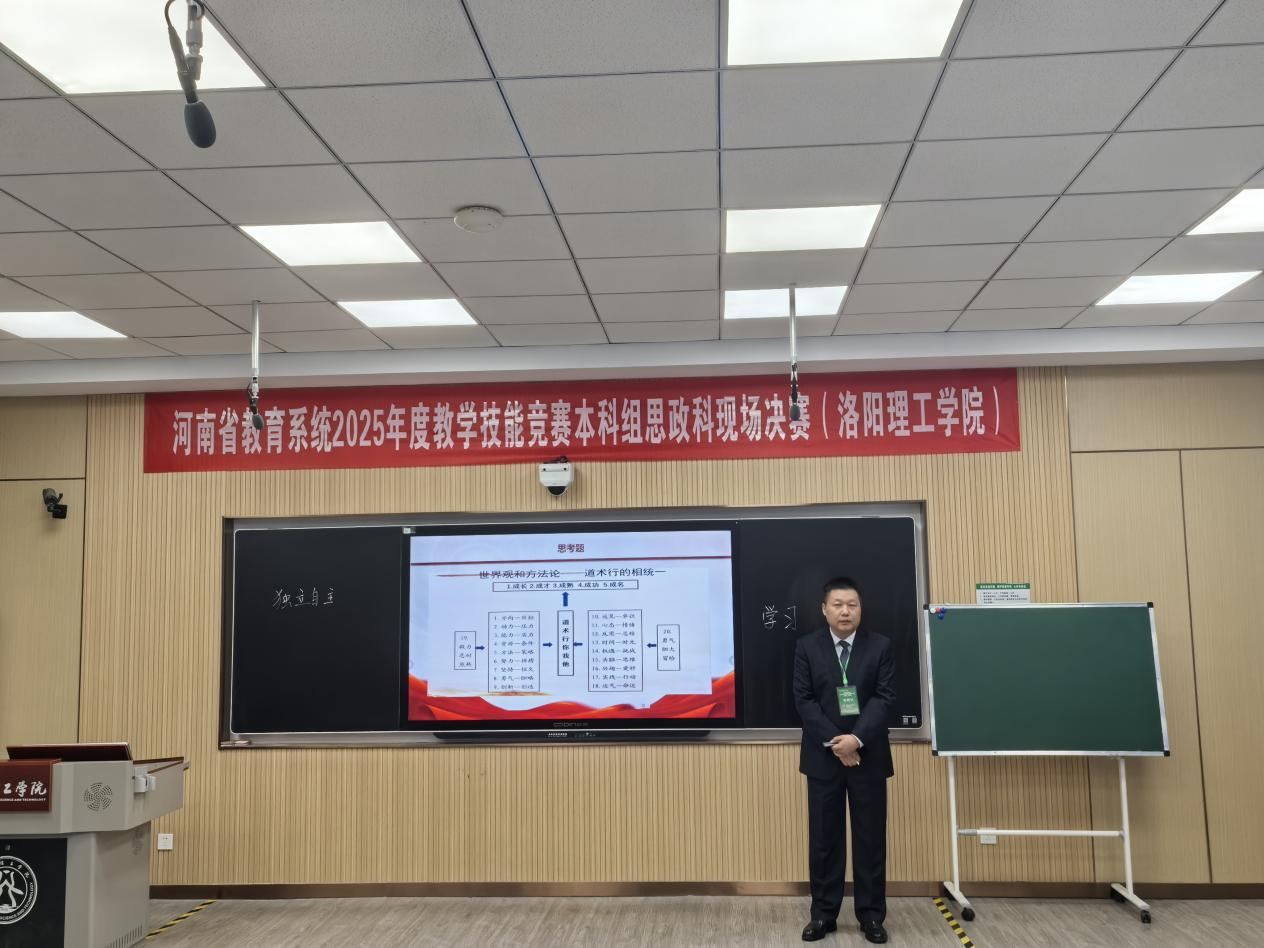 近日,由河南省总工会、河南省教育厅共同主办的河南省教育系统2025年度教学技能竞赛现场决赛在洛阳理工学院落幕。我院教师杨永兴代表学校参加该项赛事“本科组思政科”现场决赛,并荣获一等奖。
