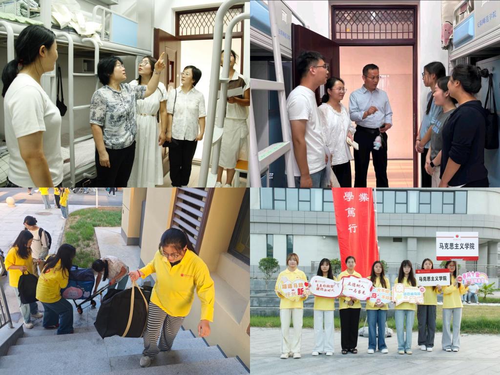 学院提前谋划、统筹部署。迎新点内设立醒目的指引标识,各班新生报到区、绿色通道区等功能区划分清晰,流程顺畅便捷。同时,安排迎新志愿者于校门口和各宿舍区值守,协助新生搬运行李,为其指引路线、答疑解惑,真正做到“让新生少跑腿,让服务多跑路”。在迎新过程中,学院领导老师深入迎新现场,细致询问新生报到情况,并与志愿者、新生及家长亲切交流,传递温暖与关怀。在新生家长座谈会上,胡运锋院长代表学院全体师生对家长的到来表示欢迎并强调了家校共育的重要性,共同围绕学生成长、学业发展及大学生活等方面进行深入交流。会后,学院领导班子及各年级辅导员深入学生宿舍走访慰问2025级新同学,认真倾听同学们初入学校的所思所感所想,叮嘱新同学提高防范意识、养成良好的生活习惯。
