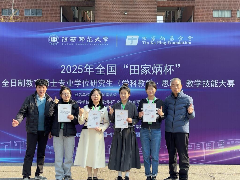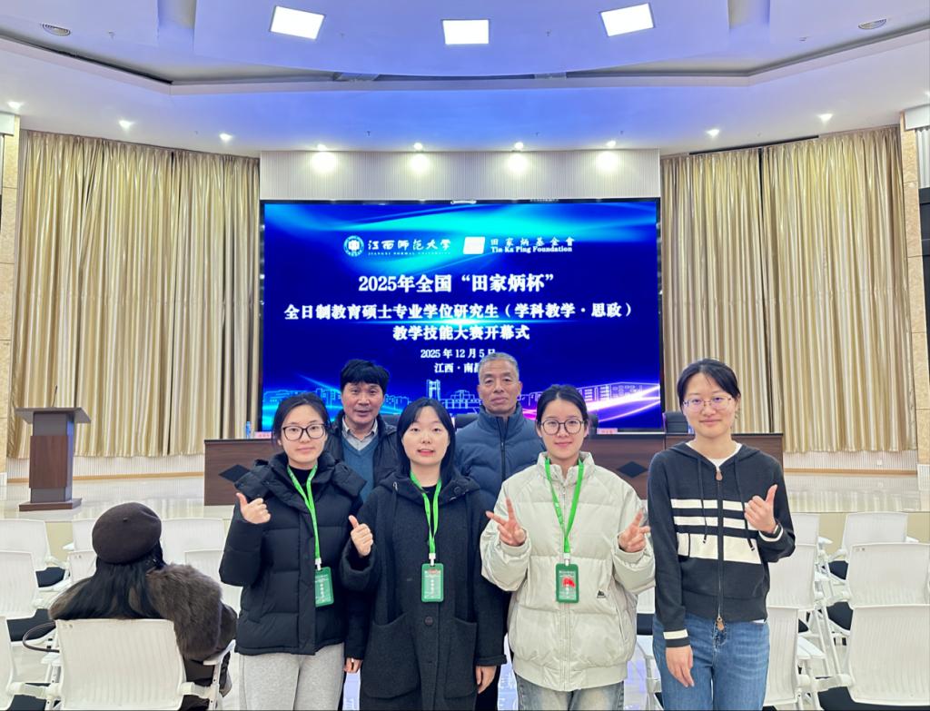 2025年12月5-7日,2025 年全国 “田家炳杯” 全日制教育硕士专业学位研究生(学科教学·思政)教学技能大赛决赛在江西师范大学举办,我院邓佳习、宋欣艺、徐蕾、孔子铮等4名选手参加决赛。经过激烈角逐,邓佳习荣获大赛二等奖,宋欣艺获三等奖,徐蕾、孔子铮获优秀奖,开创了我院学科教学·思政教育硕士教学技能竞赛历史佳绩,彰显了我院研究生过硬的专业素养与教学实践能力,体现了学院在思政教育硕士培养方面的扎实成效。