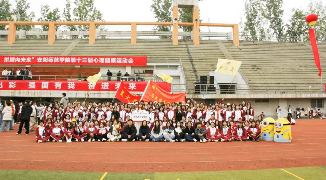 在本次心理健康运动会开幕式中,学生们共同表演了美心操和甲骨文操,诠释了大学生积极的生活态度,“腾飞跑”中,我院旗手挥舞着黄色院旗奋力追逐,看台上锣鼓交相,为参赛的师生加油助威。田径场上,设置一系列富有创意与意义的比赛项目,包括“五谷流进仓”、“遇沟架桥”、“重写山河”、“红旗缚漳龙”、“人工天河”、“走过幸福渠”等,在比赛过程中,每队同学以饱满的热情和高昂的斗志积极参与,全身心投入到各项比赛中。此起彼伏的呐喊声把心理健康运动会的氛围推向了高潮,欢笑声、加油助威声响彻整个校园。通过亲身体验,我院学子对“自力更生、艰苦创业、团结协作、无私奉献”的红旗渠精神有了更加深刻的体会和感悟。本次心理健康运动会,我院荣获安阳师范学院第十三届心理健康运动会学生组“三等奖”,充分彰显了我院学子的激情与活力。