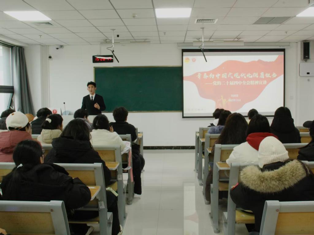 为扎实推进青年马克思主义者培养工程,助力我院青马学子淬炼思想根基、提升政治站位。12月23日,我校青年马克思主义学院成员李二鹏于明园教学楼3A-208为我院学子开展以“不止于知道:让理论在青春与实践的泥土里生根”为主题的宣讲活动。我院学子积极参与。