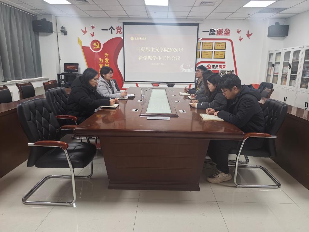 3月6日,我院在明园教学楼3A-502召开2026年新学期学生工作会议,学院党委书记付卫华、党委副书记董晶及全体辅导员参会,会议由董晶主持。