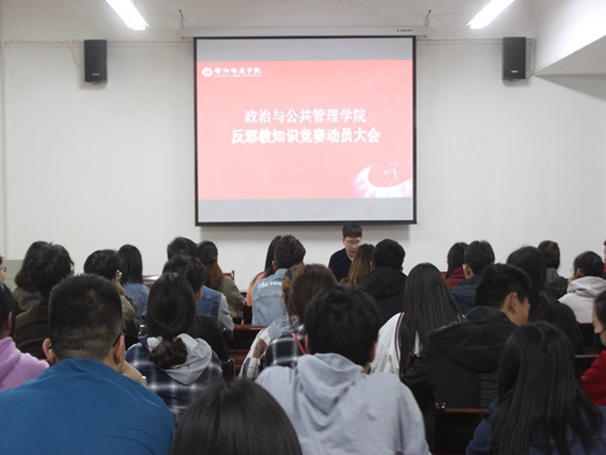 为提高学生识邪防邪能力,动员我院学生积极参加“全国反邪教知识竞赛活动”, 4月2日,我院于逸夫楼1103召开反邪教知识竞赛动员大会。我院分团委副书记甄丹东老师出席并主持会议,17、18级班委参加本次大会。