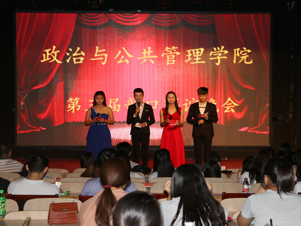 在舞姿飘逸、摇曳生姿的开场舞《落花》后,晚会正式拉开帷幕。此次晚会各个部口节目别出心裁、魅力四射:古典舞《凉凉》、《三寸天堂》轻盈优美,韵味十足;现代舞《Good boy》、《Seven》激情澎湃;《古韵今风》更是以功夫与舞剑的形式展现了中华文化的博大精深;《你辩我论》独具匠心的用辩论赛形式在令人捧腹的同时展示了辩论的独特风采。精彩绝伦的《泰坦尼克号》、《秀才达人》等小品也是赢得了场下观众的阵阵掌声与欢笑。晚会上,主席团的歌舞串烧编排精妙、动作到位,将整个晚会推向了高潮,欢呼声一浪高过一浪。最后,15级全体部长合唱《政管学院的日子》,大屏幕上精心制作的MV诉说了一年来工作的收获与喜悦。
