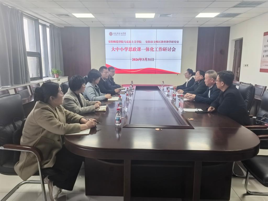 3月31日下午,安阳师范学院马克思主义学院与安阳市文峰区教育局在明园3A303会议室召开大中小学思政课一体化建设工作研讨会。安阳市文峰区教育局党组成员、副局长赵冬、区教研室主任柳文生、副主任卢全军、区教研员丁茵,马克思主义学院党委书记付卫华、院长胡运锋、副院长杨廷强、万晓飞、安阳市大中小学思政课一体化虚拟教研室负责人参加会议。